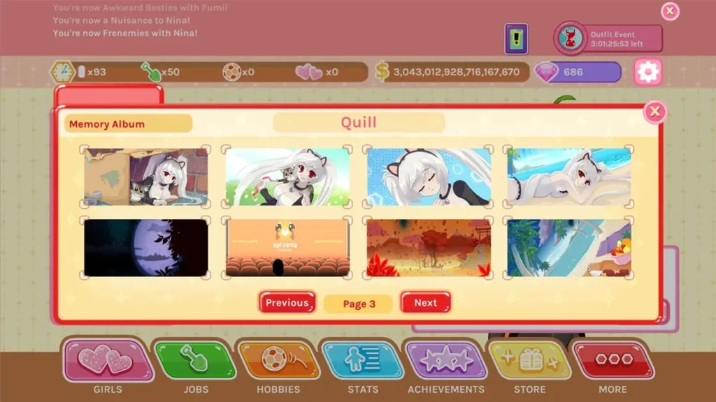 Time Skips are a game-changer. They instantly complete a set amount of real-world time for a specific activity. Waiting an hour to afford a gift? Use a 1-Hour Time Skip on your job. Need one more hobby level for a date requirement? Skip it! Earning these through achievements makes everything flow smoother.